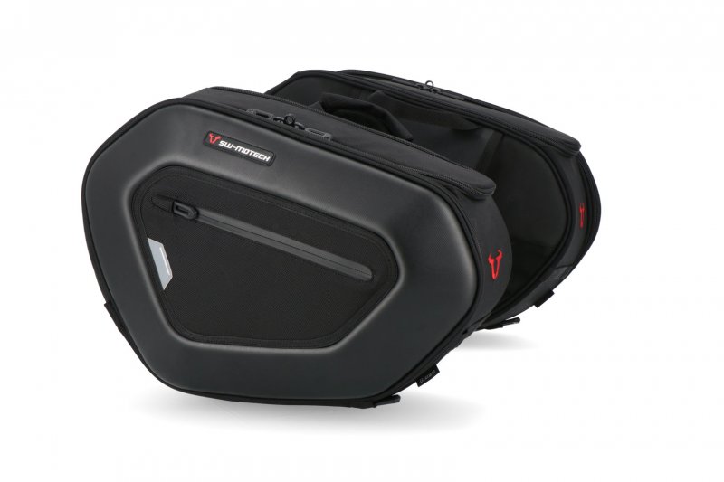 The PRO BLAZE saddlebags with removable support arms impress with a sporty look, low weight and a clever fastening system. SW-MOTECH manufactures the bags from robust and especially UV-resistant 1680D Ballistic Nylon. In combination with side panels made of dimensionally stable EVA material, the luggage is protected from splashing water and dust. Developed specifically for sporty motorcycles, the saddlebags have minimal effect on handling performance. When travelling without luggage, the removable support arms can be detached with a simple step, leaving only inconspicuous holders behind on the bike.