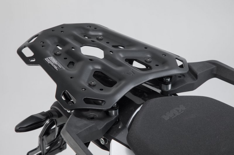 Ready for big adventure: Our ADVENTURE-RACK proves itself with its extreme durability and function-oriented shape. More than 15 years of experience producing racks, combined with feedback from customers and test riders, went into the development of this aluminum rack Material thickness, weight and geometry have been optimized for demanding tours and off-road use. The bike-specific attachments guarantee the best fit and easy mounting on original attachment points. Specifically developed for long-distance enduros, large street and sport touring machines, the ADVENTURE-RACK offers a large contact surface. Numerous, large lashing eyes provide secure hold for tail bags. The functional bores require adapter kits for attaching top cases by SW-MOTECH, Givi, Krauser and Shad or SysBags.