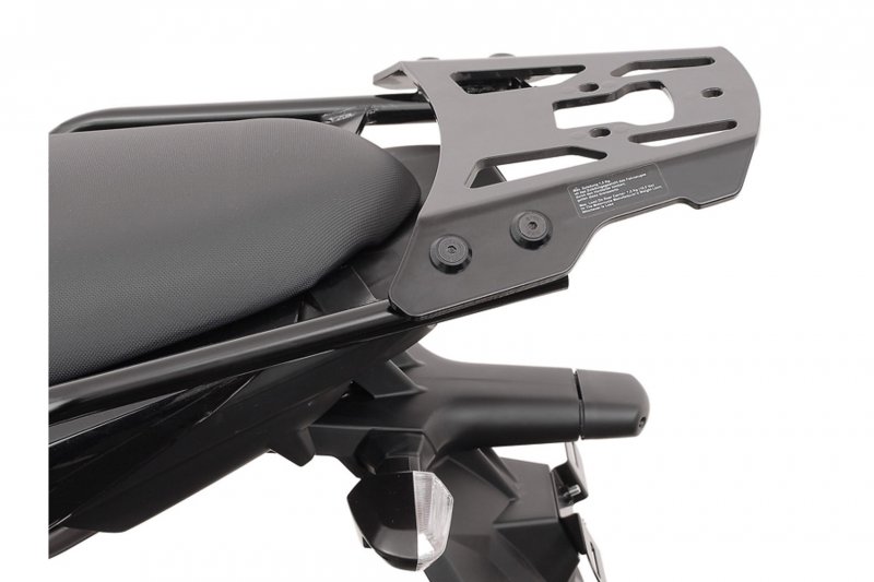 The elegant and versatile ALU-RACK cuts a good figure as a rack. The aluminum all-rounder combined with an appropriate adapter plate provides secure grip for top cases from SW-MOTECH or other manufacturers, as well as SysBag 30. A simple mounting of the adapter plate on the ALU-RACK happens with just three quick-release fasteners. To secure the top case to the adapter plate in turn you just need one hand grip - thanks to the QUICK-LOCK quick-release fastener system. The ALU-RACK is also suitable for rigging tail bags, particularly in combination with the expansion that is available separately.