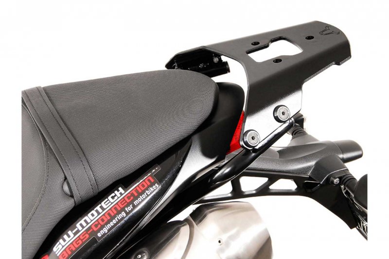 The elegant and versatile ALU-RACK cuts a good figure as a rack. The aluminum all-rounder combined with an appropriate adapter plate provides secure grip for top cases from SW-MOTECH or other manufacturers, as well as SysBag 30. A simple mounting of the adapter plate on the ALU-RACK happens with just three quick-release fasteners. To secure the top case to the adapter plate in turn you just need one hand grip - thanks to the QUICK-LOCK quick-release fastener system. The ALU-RACK is also suitable for rigging tail bags, particularly in combination with the expansion that is available separately.