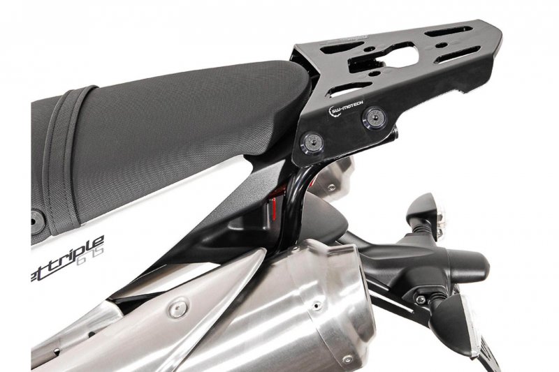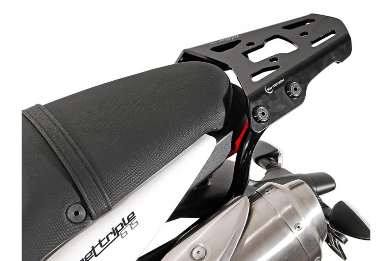 The elegant and versatile ALU-RACK cuts a good figure as a rack. The aluminum all-rounder combined with an appropriate adapter plate provides secure grip for top cases from SW-MOTECH or other manufacturers, as well as SysBag 30. A simple mounting of the adapter plate on the ALU-RACK happens with just three quick-release fasteners. To secure the top case to the adapter plate in turn you just need one hand grip - thanks to the QUICK-LOCK quick-release fastener system. The ALU-RACK is also suitable for rigging tail bags, particularly in combination with the expansion that is available separately.