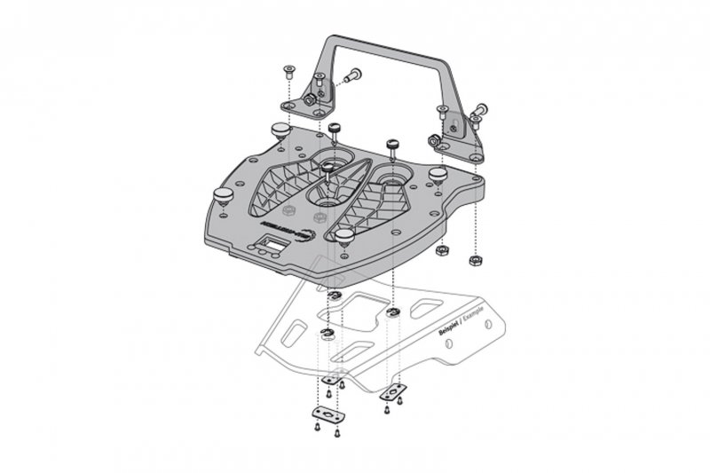 Adapter plate for attaching a top case to an ALU-RACK. The QUICK-LOCK quick-release fasteners allow you to mount and dismount the adapter plate within a matter of seconds.