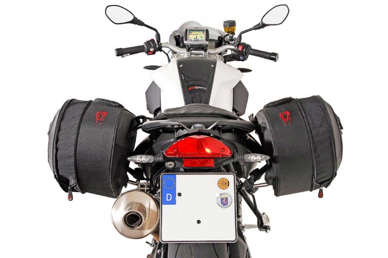 The BLAZE saddlebags with removable support arms impress with their sporty appearance, light weight and smart attachment system. Developed specifically for sporty motorcycles, the saddlebags have a minimal effect on driving characteristics. When travelling without luggage, the removable support arms can be detached with a simple step, leaving only inconspicuous holders behind on the bike.