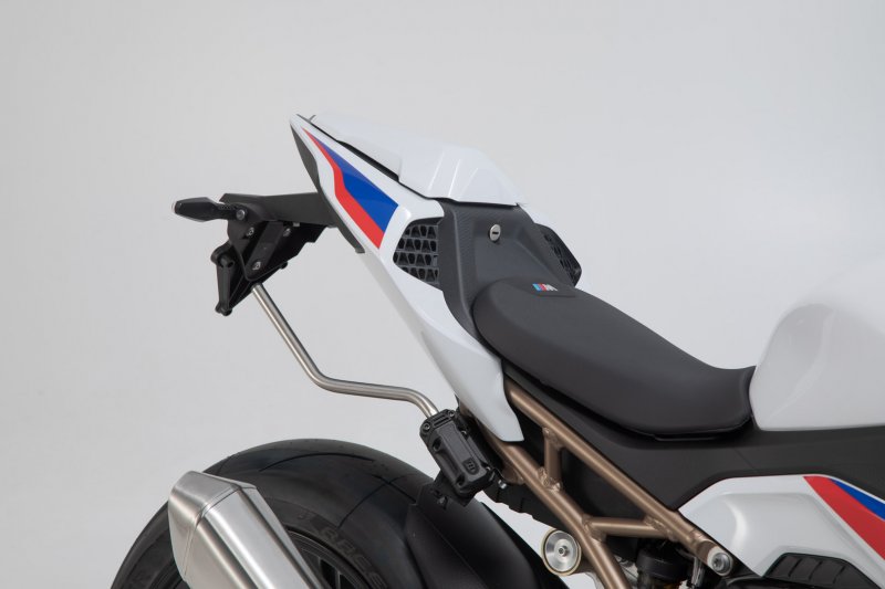 The BLAZE saddlebags with removable support arms impress with their sporty appearance, light weight and smart attachment system. Developed specifically for sporty motorcycles, the saddlebags have a minimal effect on driving characteristics. When travelling without luggage, the removable support arms can be detached with a simple step, leaving only inconspicuous holders behind on the bike.