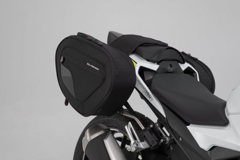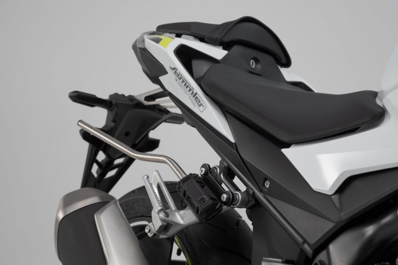 The BLAZE saddlebags with removable support arms impress with their sporty appearance, light weight and smart attachment system. Developed specifically for sporty motorcycles, the saddlebags have a minimal effect on driving characteristics. When travelling without luggage, the removable support arms can be detached with a simple step, leaving only inconspicuous holders behind on the bike.