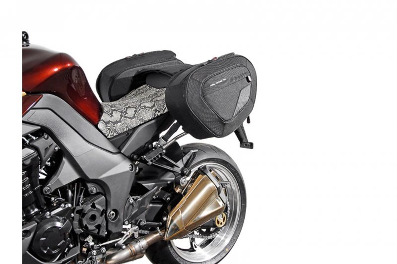 The BLAZE saddlebags with removable support arms impress with their sporty appearance, light weight and smart attachment system. Developed specifically for sporty motorcycles, the saddlebags have a minimal effect on driving characteristics. When travelling without luggage, the removable support arms can be detached with a simple step, leaving only inconspicuous holders behind on the bike.