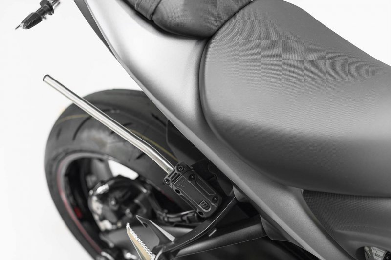 The BLAZE saddlebags with removable support arms impress with their sporty appearance, light weight and smart attachment system. Developed specifically for sporty motorcycles, the saddlebags have a minimal effect on driving characteristics. When travelling without luggage, the removable support arms can be detached with a simple step, leaving only inconspicuous holders behind on the bike.