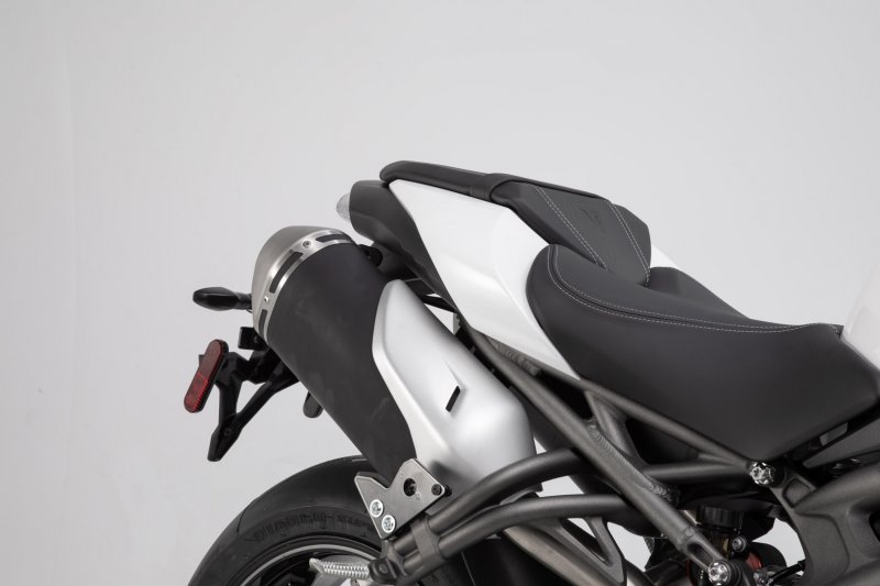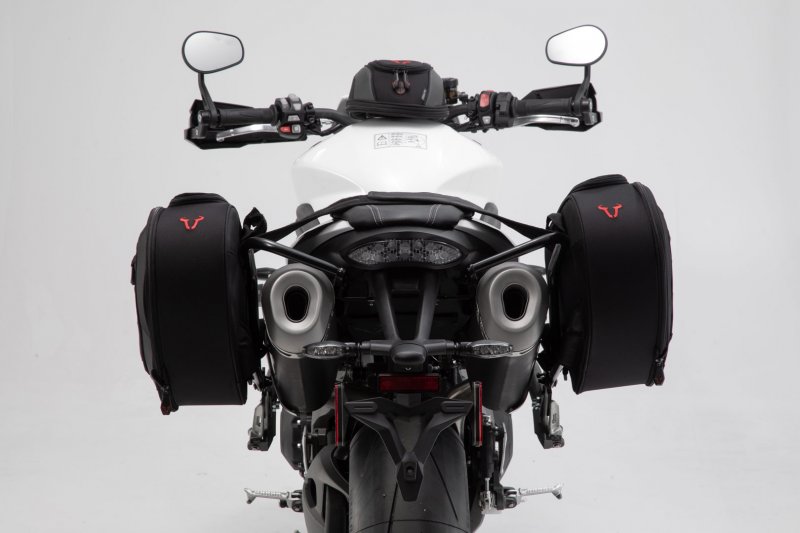 The BLAZE saddlebags with removable support arms impress with their sporty appearance, light weight and smart attachment system. Developed specifically for sporty motorcycles, the saddlebags have a minimal effect on driving characteristics. When travelling without luggage, the removable support arms can be detached with a simple step, leaving only inconspicuous holders behind on the bike.