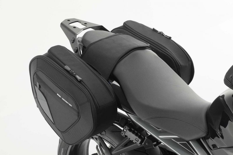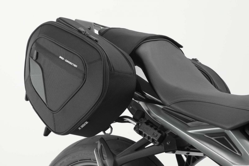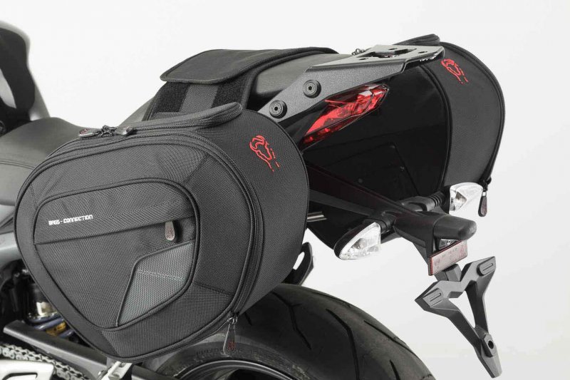 The BLAZE saddlebags with removable support arms impress with their sporty appearance, light weight and smart attachment system. Developed specifically for sporty motorcycles, the saddlebags have a minimal effect on driving characteristics. When travelling without luggage, the removable support arms can be detached with a simple step, leaving only inconspicuous holders behind on the bike.