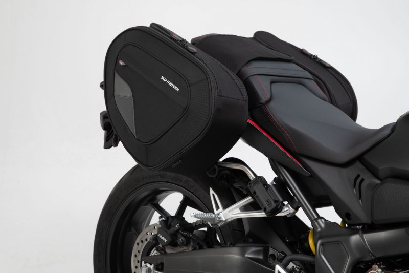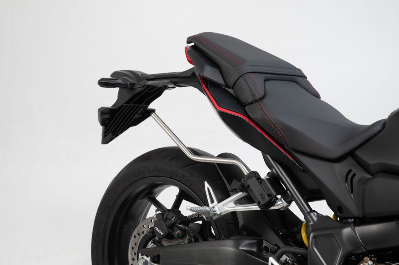The BLAZE saddlebags with removable support arms impress with their sporty appearance, light weight and smart attachment system. Developed specifically for sporty motorcycles, the saddlebags have a minimal effect on driving characteristics. When travelling without luggage, the removable support arms can be detached with a simple step, leaving only inconspicuous holders behind on the bike.