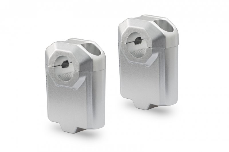 Made of high-quality aluminium alloy, these bar risers raise the handlebars by 50 mm and ensure noticeably greater comfort while driving. The stable and weather-resistant bar riser fits on handlebars with a diameter of 22 mm.