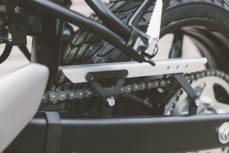 - Solid aluminum construction as an alternative to plastic chain guard
