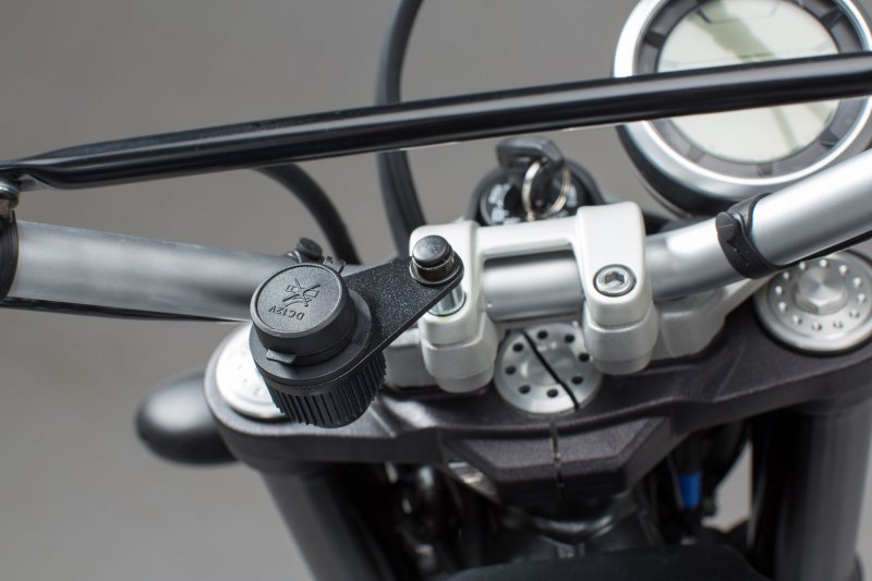 Mounting plate for mounting a cigarette lighter socket, which allows the power supply of GPS, smartphone or other electronic devices directly via the 12 V vehicle electrical system.