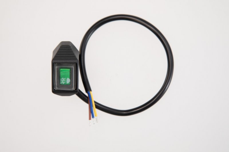 The green-lit, splash-proof on/off switch is connected to three plug connectors via an insulated cable. This compact switch can be attached to barrel handlebars with Ø 22 mm up to 1 inch (25.4 mm).Also available in a blue version for high beams The switches are already included in delivery with EVO lights.