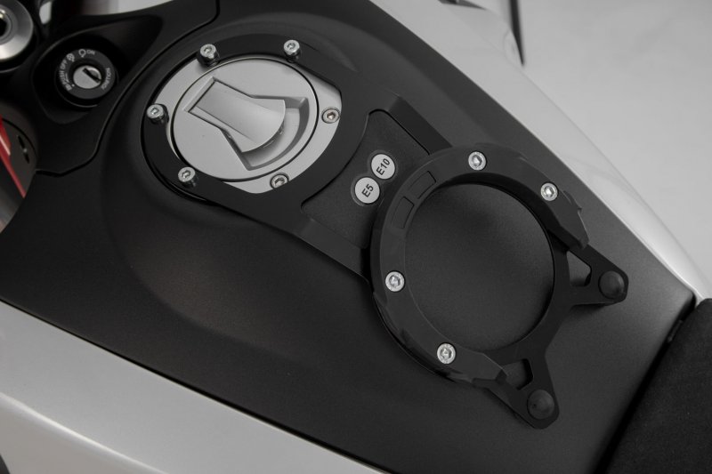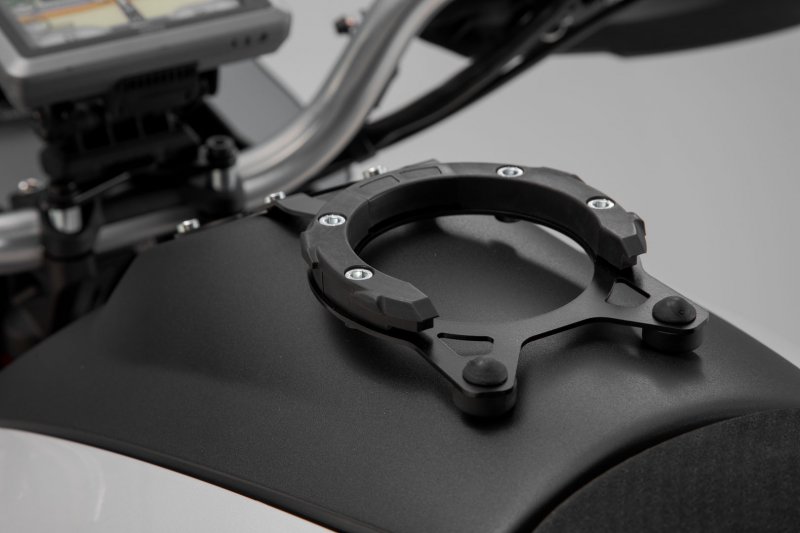 SW-MOTECH revolutionized motorcycle luggage with the introduction of the first tank ring with a convenient QUICK-LOCK mechanism. Made from glass-fiber-reinforced polyamide, the patented EVO tank ring employs a bike-specific design to provide complete stability and an optimal fit. EVO tank bags can be mounted or removed in one simple motion, yet the tank ring maintains a secure hold even during off-road riding.