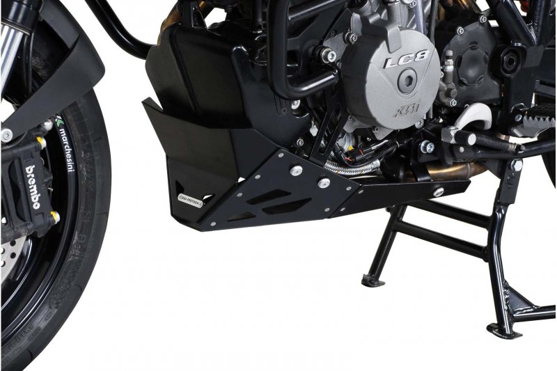 Additional protection against rocks and contact with the ground for the engine: the high-quality, aluminium alloy engine guard shows what it's capable of off the street, but provides extra safety and an individualized look on the streets, too. State-of-the-art production gives these bike-specific protectors a secure fit without affecting ground clearance. The installation on frame mounting points lends additional stability and allows for easy installation.