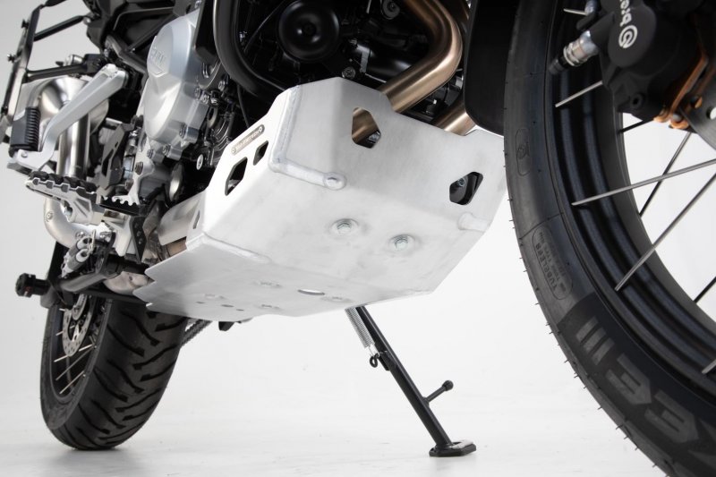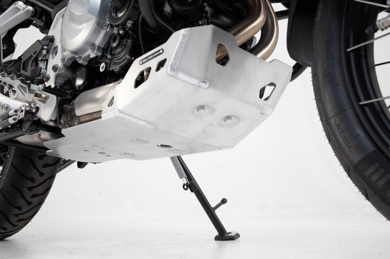 Additional protection against rocks and contact with the ground for the engine: the high-quality, aluminium alloy engine guard shows what it's capable of off the street, but provides extra safety and an individualized look on the streets, too. State-of-the-art production gives these bike-specific protectors a secure fit without affecting ground clearance. The installation on frame mounting points lends additional stability and allows for easy installation.