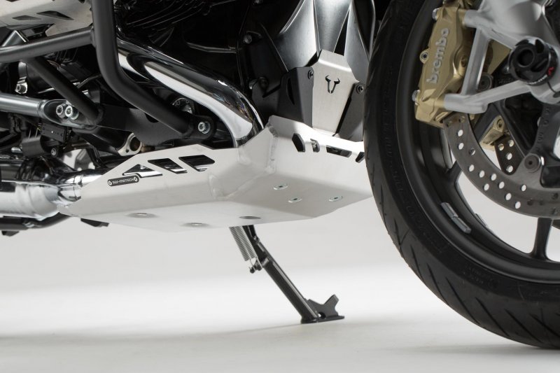 Additional protection against rocks and contact with the ground for the engine: the high-quality, aluminium alloy engine guard shows what it's capable of off the street, but provides extra safety and an individualized look on the streets, too. State-of-the-art production gives these bike-specific protectors a secure fit without affecting ground clearance. The installation on frame mounting points lends additional stability and allows for easy installation.