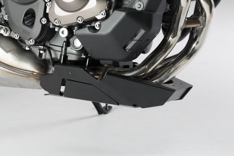 The SW-MOTECH front spoiler, which is tailored to the design of the bike, offers reliable protection against stone chips and unintentional contact with the ground. The powder coating on the surface is extremely durable and permanently protects against corrosion. Extremely sturdy underbody protection can be easily attached to original attachment points using the custom steel attachments provided, all without drilling or welding.