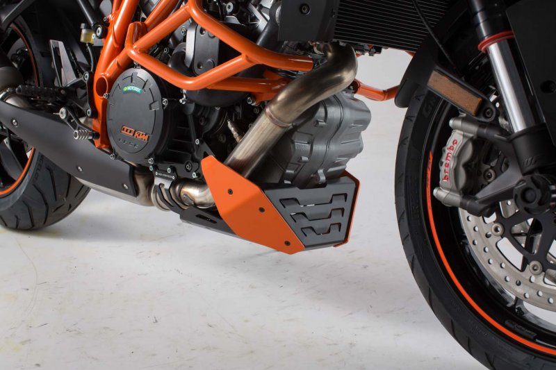 The SW-MOTECH front spoiler, which is tailored to the design of the bike, offers reliable protection against stone chips and unintentional contact with the ground. The powder coating on the surface is extremely durable and permanently protects against corrosion. Extremely sturdy underbody protection can be easily attached to original attachment points using the custom steel attachments provided, all without drilling or welding.