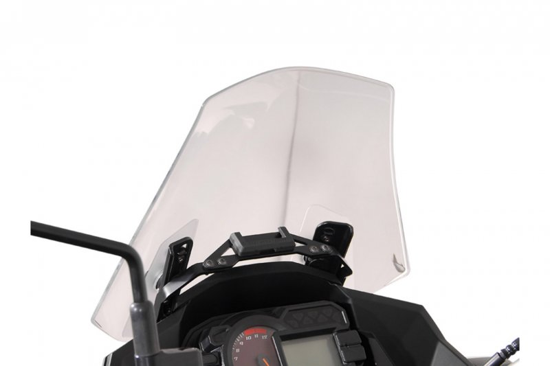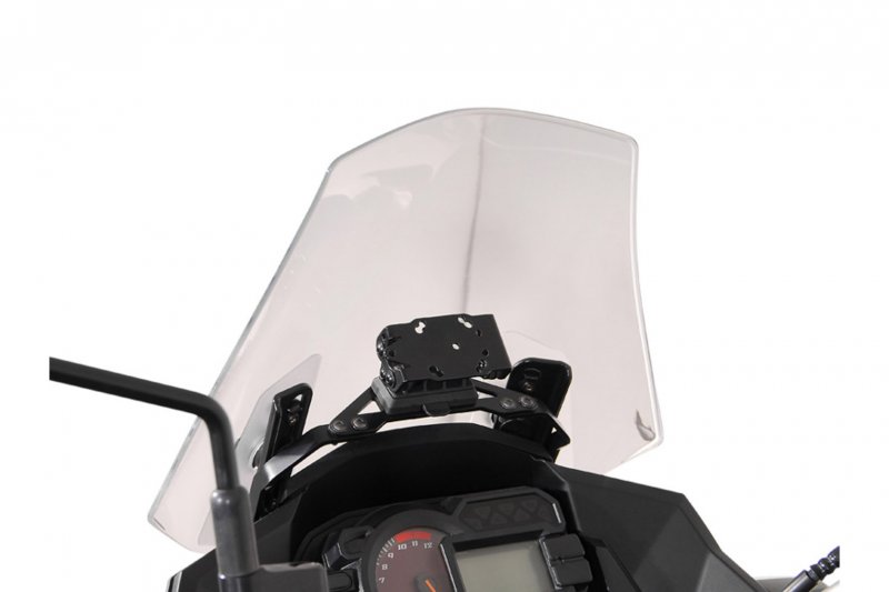 In order to achieve optimal positioning, a powder-coated steel plate ensures the stable attachment of the GPS mount on original attachment points in the cockpit. Clever positioning, vibration dampening and easily removable: The bike-specific GPS mount combines all of these features. The pivotable holder can be removed in an instant and its universal drill-hole pattern allows the attachment of many current models of GPS devices as the Navi Case Pro device cases and smartphone hardcases from SW-MOTECH. Its integrated shock absorption protects your device against vibrations.
