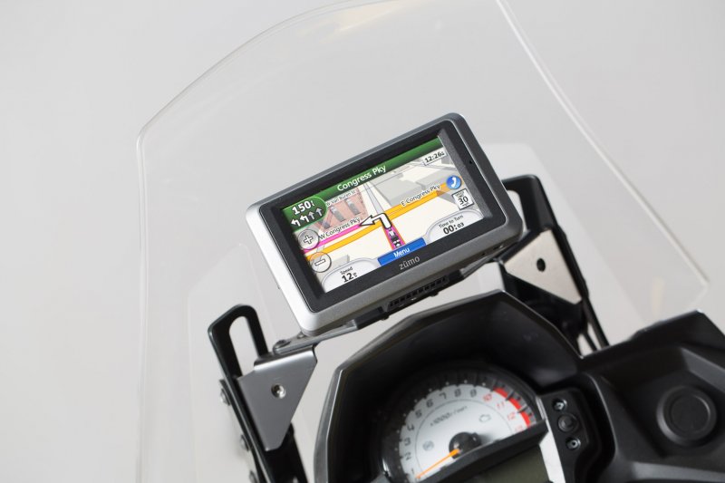 In order to achieve optimal positioning, a powder-coated steel plate ensures the stable attachment of the GPS mount on original attachment points in the cockpit. Clever positioning, vibration dampening and easily removable: The bike-specific GPS mount combines all of these features. The pivotable holder can be removed in an instant and its universal drill-hole pattern allows the attachment of many current models of GPS devices as the Navi Case Pro device cases and smartphone hardcases from SW-MOTECH. Its integrated shock absorption protects your device against vibrations.