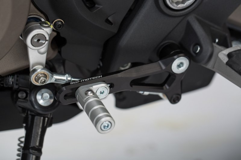 Gear levers by SW-MOTECH combine specially selected materials and innovative design with perfect fit. A HART-COAT® treatment prevents scratches on the lever, the built-in valve spring protects the gear lever in case of a crash.