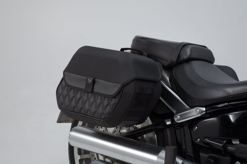 The bike-specific bag carrier can be easily and quickly mounted on to original attachment points on the fender strut. The quick lock system allows LH Legend Gear side bags to be attached and removed in just a few easy hand movements, without the driver foregoing reliable bag fastening.