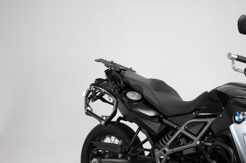 - Secure hold on PRO or EVO side carriers from SW-MOTECH: the pre-installed support rail on the case is locked into place on the four mounting bolts of the side carrier and secured with a lockable latch on the carrier