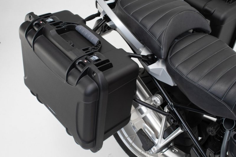 This system includes two extremely sturdy NANUK side cases, two side carriers, an adapter kit, a lock set, anti-theft protection and a practical multitool for easily releasing the quick-release fasteners on the removable side carrier. In short: with this case system, your bike is more than ready for your next long tour. Made of 5 mm thick, UV-resistant plastic, NANUK cases protect your belongings from water, dust and bumps. An integrated valve provides automatic pressure equalization in strong pressure and temperature fluctuations. This allows the waterproof case to be opened easily at any time. The side case offers 35 l of storage and can be attached to the side carrier in two easy steps. The side carriers from SW-MOTECH with patented QUICK-LOCK quick release fasteners can be completely removed after the tour in no time at all. With the included anti-theft protection, a quick-release fastener can be replaced on each side and the carrier can be protected against thieves. The NANUK case is then secured to the side carrier with a lockable latch. The case lid also has two matching locks and reinforced optional padlock inserts.