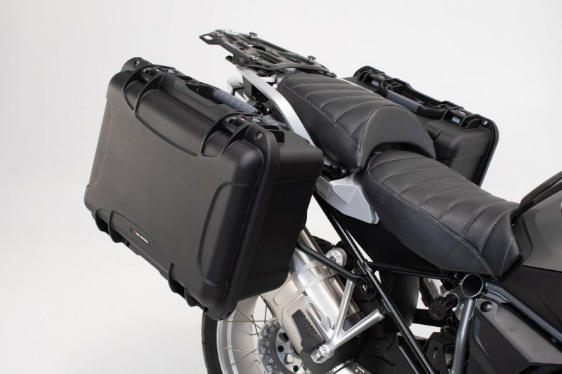 This system includes two extremely sturdy NANUK side cases, two side carriers, an adapter kit, a lock set, anti-theft protection and a practical multitool for easily releasing the quick-release fasteners on the removable side carrier. In short: with this case system, your bike is more than ready for your next long tour. Made of 5 mm thick, UV-resistant plastic, NANUK cases protect your belongings from water, dust and bumps. An integrated valve provides automatic pressure equalization in strong pressure and temperature fluctuations. This allows the waterproof case to be opened easily at any time. The side case offers 35 l of storage and can be attached to the side carrier in two easy steps. The side carriers from SW-MOTECH with patented QUICK-LOCK quick release fasteners can be completely removed after the tour in no time at all. With the included anti-theft protection, a quick-release fastener can be replaced on each side and the carrier can be protected against thieves. The NANUK case is then secured to the side carrier with a lockable latch. The case lid also has two matching locks and reinforced optional padlock inserts.