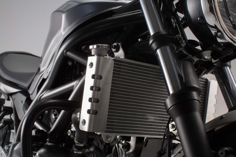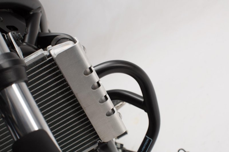 The protector, constructed to fit with the peg length of the motorcycle, offers an extra dose of protection from rock chips. The solid construction consists of a frame in aluminium alloy. The radiator guard can be quickly and easily mounted on original attachment points. All elements necessary for installation are included in delivery.