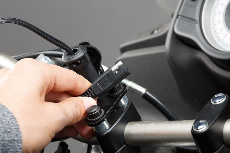SAE adapter with cable for connection of vehicle power socket to SAE connections, cable length 55 cm, for 12 V operating voltage. The standardized power supply via SAE is suitable for various motorcycle accessories, from the connection of heated clothing to the installation of distribution boxes in the tank bag.