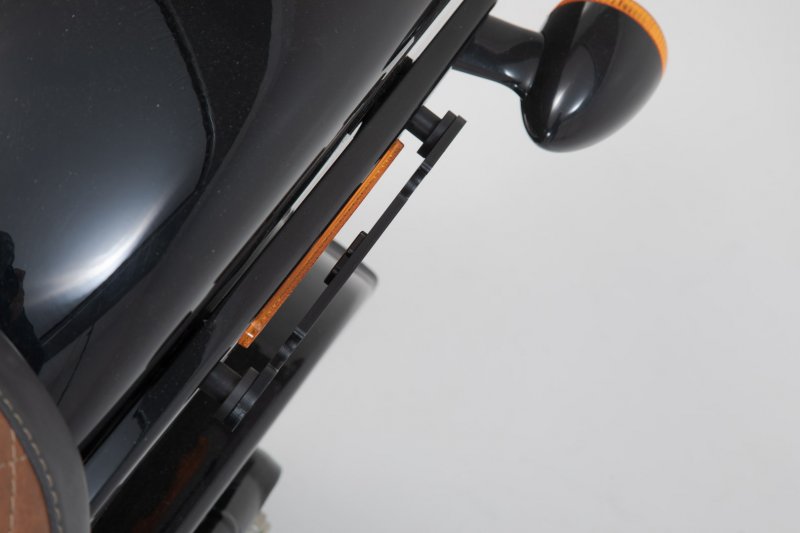 The bike-specific bag carrier can be easily and quickly mounted on to original attachment points on the fender strut. The quick lock system allows LH Legend Gear side bags to be attached and removed in just a few easy hand movements, without the driver foregoing reliable bag fastening.