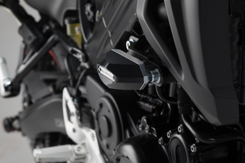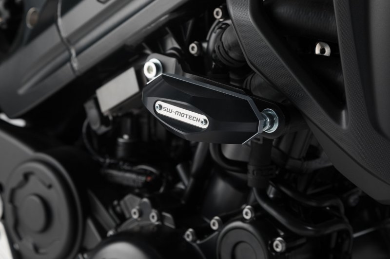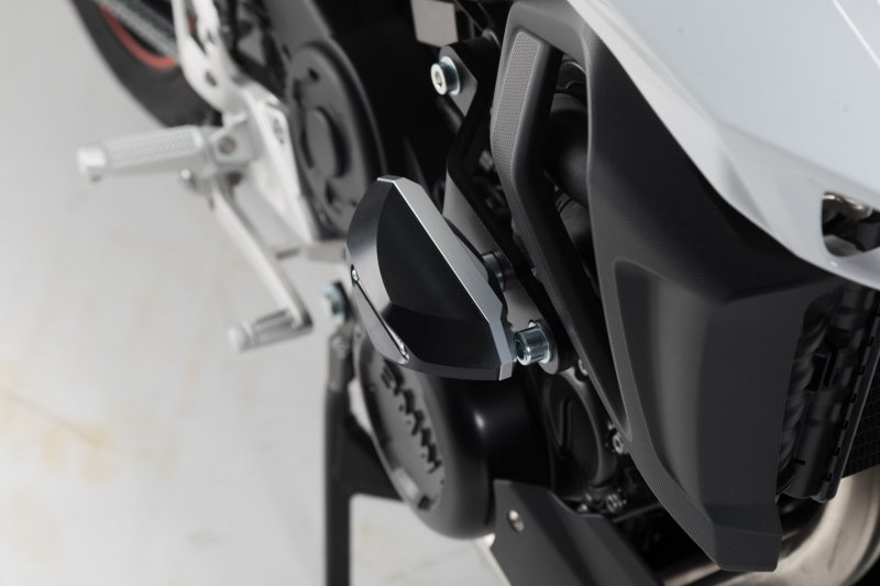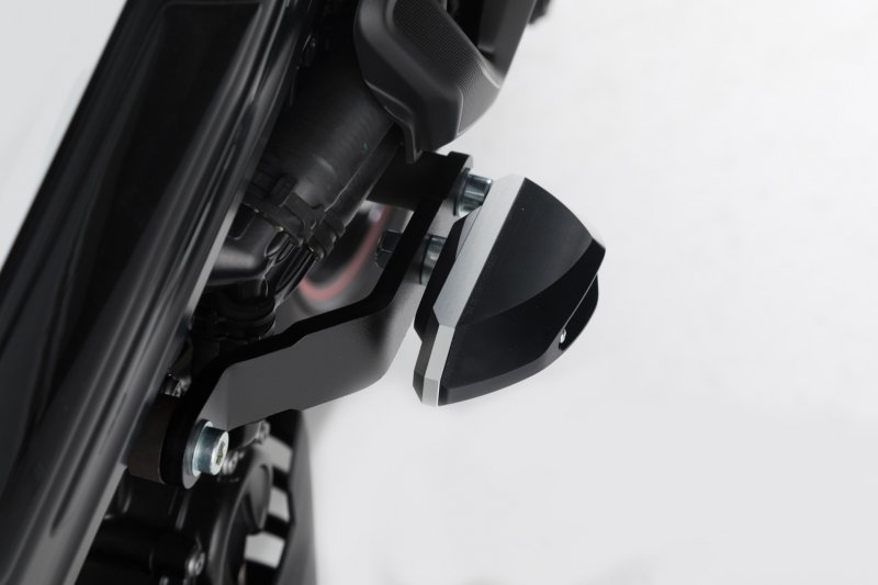Frame crash pads provide additional protection in the event of a fall. The shape, surface and material of the pads provide excellent sliding properties to reduce damage to the motorcycle. The robust aluminium mounting bracket is easy to install, and the abrasion-resistant, CNC-milled slider pads are replaceable.