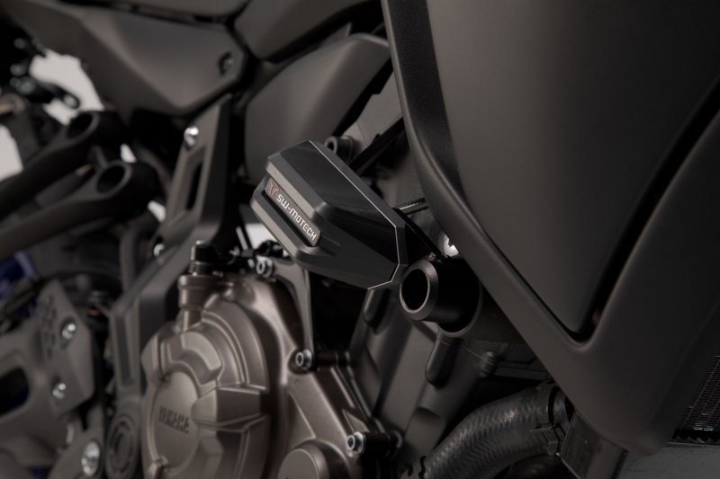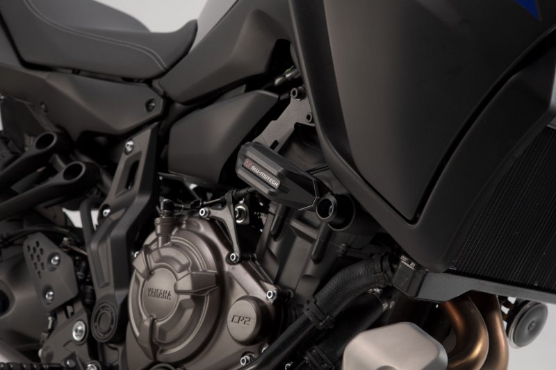 Frame crash pads provide additional protection in the event of a fall. The shape, surface and material of the pads provide excellent sliding properties to reduce damage to the motorcycle. The robust aluminium mounting bracket is easy to install, and the abrasion-resistant, CNC-milled slider pads are replaceable.