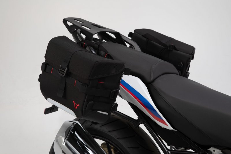 SysBag 15/10 bag systemThe composition of this system is optimally designed for the tail shape of your motorcycle. It includes a Sysbag 15 for the left side and a Sysbag 10 for the right side. With this complete solution, you can equip your machine for the next long tour in no time. Once the SLC side carriers are mounted, the SysBag bags can be attached in just one click using the quick release fastener system of the adapter plates. The precise, bike-specific development of the SLC side carriers allows for a simple and easy attachment to the original attachment points on the vehicle. The SysBags combine low weight and sturdiness, versatility and thought-out details. All SysBags are made of particularly robust, military-tested ballistic nylon, have a roll closure and an overlapping cover. Double PU lining provides additional weather protection, as well as a removable, waterproof inner bag, which is attached by Velcro® to the roll closure. Reflective details increase road safety. After the tour, our SysBags can be comfortably carried using the integrated carrying handle or the included shoulder strap. SLC Side carrier left- Side carrier adapts perfectly to your motorcycle's look