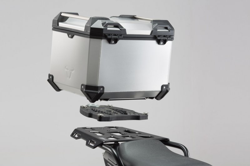 This complete solution contains everything required for installing a top case: TRAX ADV top case, bike-specific rack, adapter plate and TRAX lock set. And the next tour can start...because in the development of the TRAX ADV, stability and impermeability towards dust and water were just as important as easy handling. Whether on a off-road adventure, wanderlust tour or a short haul, the aluminum top case with a thickness of 1.5 millimeters proves itself in every challenge. The bike-specific rack and the adapter plate secure the top case: it is simply suspended and locked with the help of the lockable latch.
