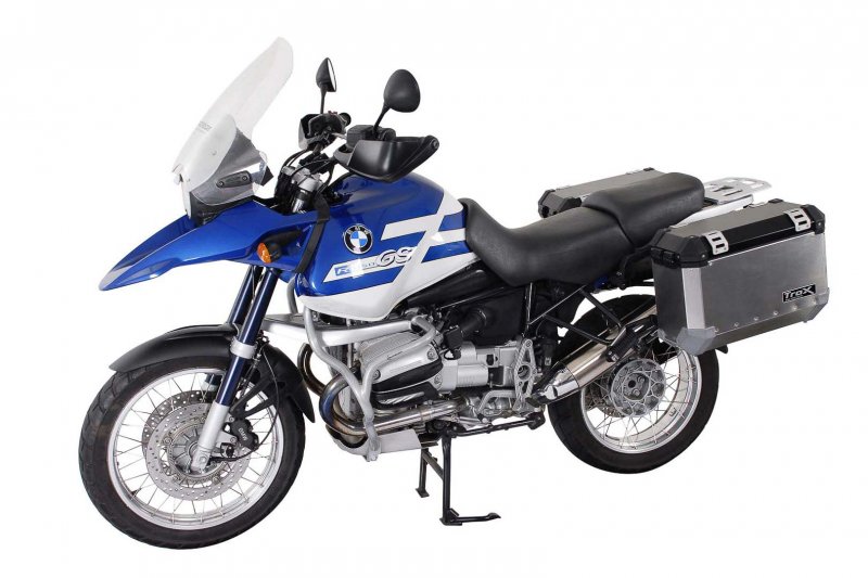 TRAX ION Aluminum case systemOrder, unpack, mount and drive away. The TRAX ION aluminum case system contains everything needed to mount two side cases on your motorcycle: two TRAX ION side cases, two removable SW-MOTECH side carriers, anti-theft protection, matching locks, adapter kit and accessories. The bike-specific carriers and the size of the cases are perfectly matched to the rear shape and exhaust system of the motorcycle. Robust processing with a body made of 1.5 mm-thick aluminum, reinforced with sturdy plastic elements and yet still lightweight: The TRAX ION cases are waterproof thanks to robot-assisted welding, punch rivet technology and interchangeable cover gaskets. The companion for trips and adventures of all types wins you over with its large chamfer for best cornering clearance, sleek look and a large range of accessories - all at an attractive price. EVO Side carrier- Detachable carrier for use with almost all common case systems
