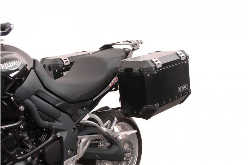 TRAX ION Aluminum case systemOrder, unpack, mount and drive away. The TRAX ION aluminum case system contains everything needed to mount two side cases on your motorcycle: two TRAX ION side cases, two removable SW-MOTECH side carriers, anti-theft protection, matching locks, adapter kit and accessories. The bike-specific carriers and the size of the cases are perfectly matched to the rear shape and exhaust system of the motorcycle. Robust processing with a body made of 1.5 mm-thick aluminum, reinforced with sturdy plastic elements and yet still lightweight: The TRAX ION cases are waterproof thanks to robot-assisted welding, punch rivet technology and interchangeable cover gaskets. The companion for trips and adventures of all types wins you over with its large chamfer for best cornering clearance, sleek look and a large range of accessories - all at an attractive price. EVO Side carrier- Detachable carrier for use with almost all common case systems