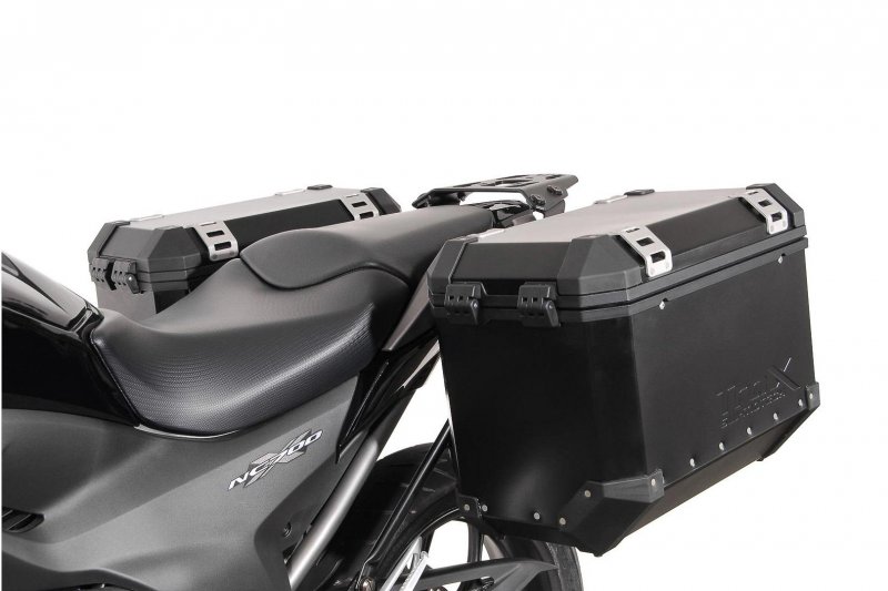 TRAX ION Aluminum case systemOrder, unpack, mount and drive away. The TRAX ION aluminum case system contains everything needed to mount two side cases on your motorcycle: two TRAX ION side cases, two removable SW-MOTECH side carriers, anti-theft protection, matching locks, adapter kit and accessories. The bike-specific carriers and the size of the cases are perfectly matched to the rear shape and exhaust system of the motorcycle. Robust processing with a body made of 1.5 mm-thick aluminum, reinforced with sturdy plastic elements and yet still lightweight: TRAX ION motorcycle cases are the new generation from the popular TRAX EVO series. The aluminum case was completely redesigned - the TRAX ION are waterproof thanks to robot-assisted welding, punch rivet technology and interchangeable cover gaskets. The companion for trips and adventures of all types wins you over with its large chamfer for best cornering clearance, sleek look and a large range of accessories - all at an attractive price. EVO Side carrier- Detachable carrier for use with almost all common case systems