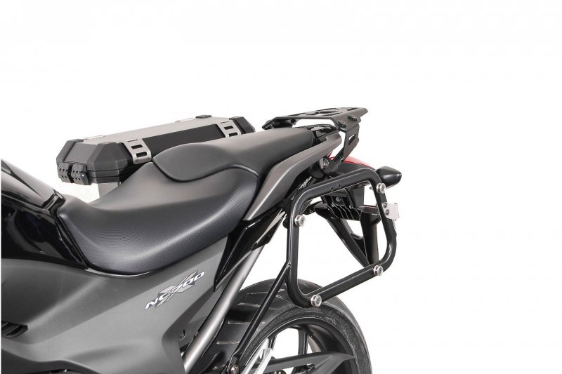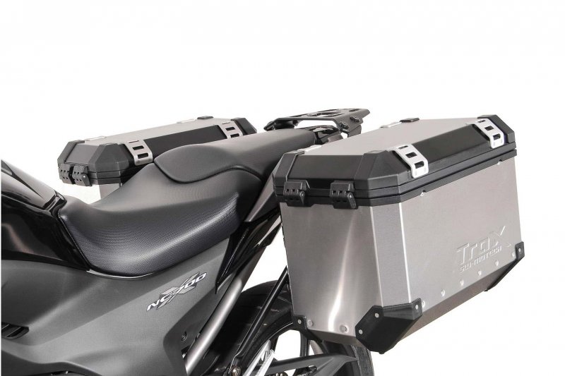 TRAX ION Aluminum case systemOrder, unpack, mount and drive away. The TRAX ION aluminum case system contains everything needed to mount two side cases on your motorcycle: two TRAX ION side cases, two removable SW-MOTECH side carriers, anti-theft protection, matching locks, adapter kit and accessories. The bike-specific carriers and the size of the cases are perfectly matched to the rear shape and exhaust system of the motorcycle. Robust processing with a body made of 1.5 mm-thick aluminum, reinforced with sturdy plastic elements and yet still lightweight: TRAX ION motorcycle cases are the new generation from the popular TRAX EVO series. The aluminum case was completely redesigned - the TRAX ION are waterproof thanks to robot-assisted welding, punch rivet technology and interchangeable cover gaskets. The companion for trips and adventures of all types wins you over with its large chamfer for best cornering clearance, sleek look and a large range of accessories - all at an attractive price. EVO Side carrier- Detachable carrier for use with almost all common case systems