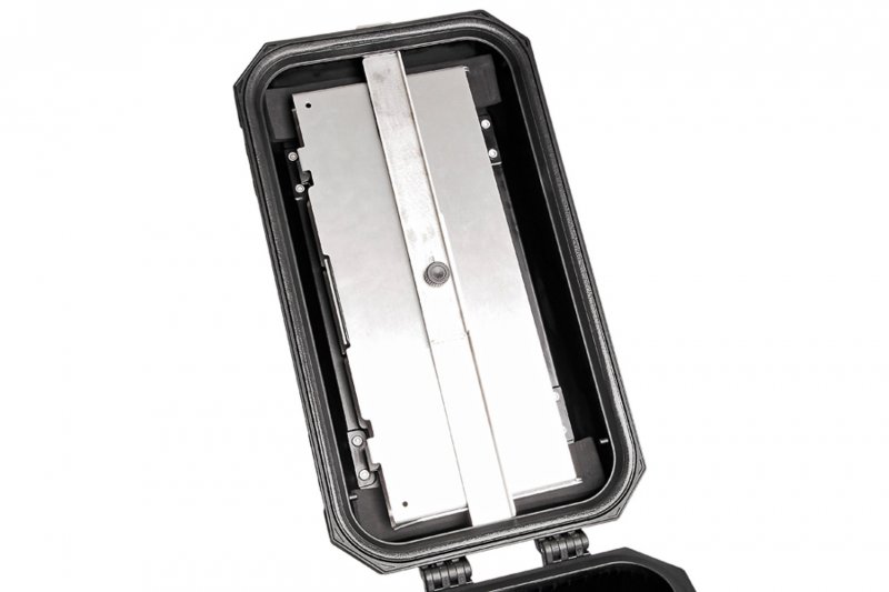 Our camping table in its light-weight aluminum design offers a stable surface for a relaxing break. The table top made of aluminum fits into every TRAX ION side case and complements the comprehensive range of accessories for the robust and waterproof aluminum case. With the additionally available pair of legs, the table can either be hooked into the TRAX ION side case or stand alone upon removal of the lower leg parts.