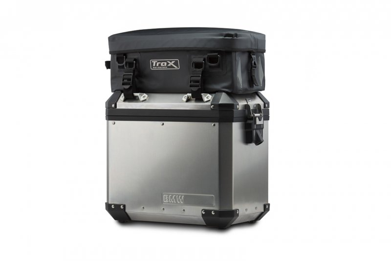 Weatherproof, robust and flexible: the TRAX M/L expansion bag can be lashed to aluminum side cases from SW-MOTECH and other brands and offers 15 liters of additional water and dustproof storage that can be reached quickly without opening the case.
