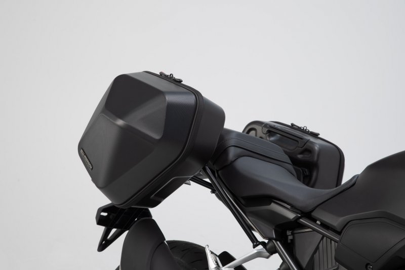Hard shell, aerodynamic shape: Thanks to the light yet robust URBAN ABS cases, you can quickly turn a street bike into a touring motorcycle. The URBAN ABS cases can be attached securely to the SLC side carrier via the quick-release fastener featuring integrated anti-theft protection in one swift move. These compact cases made of ABS plastic combine low weight with extra load-bearing capacity, underline the bike's dynamic design and only have a minimal impact on the driving characteristics.