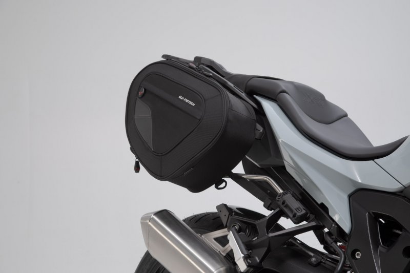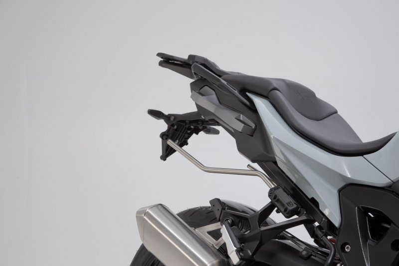 The BLAZE saddlebags with removable support arms impress with their sporty appearance, light weight and smart attachment system. Developed specifically for sporty motorcycles, the saddlebags have a minimal effect on driving characteristics. When travelling without luggage, the removable support arms can be detached with a simple step, leaving only inconspicuous holders behind on the bike.