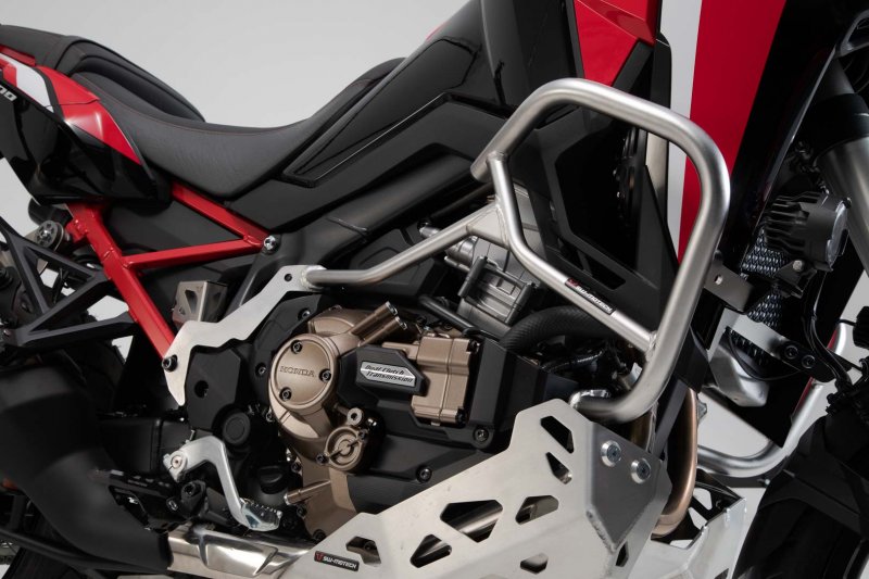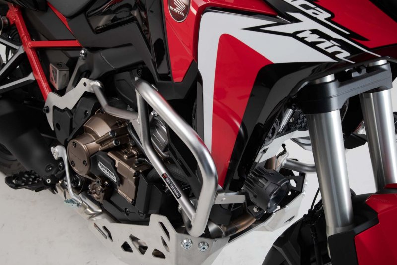 The sturdy stainless steel crash bar for the Honda Africa Twin CRF1100L protects both the engine and components from damage due to falls and scratches. The use of blasted and electropolished stainless steel offers an advantage over coated steel in that damage to the crash bar cannot lead to a loss in corrosion resistance.