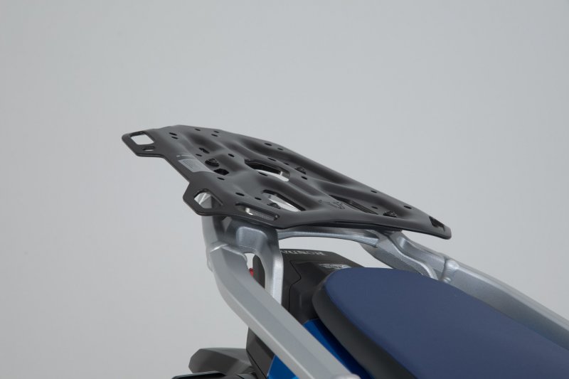 Ready for big adventure: Our ADVENTURE-RACK proves itself with its extreme durability and function-oriented shape. More than 15 years of experience producing racks, combined with feedback from customers and test riders, went into the development of this aluminum rack Material thickness, weight and geometry have been optimized for demanding tours and off-road use. The bike-specific attachments guarantee the best fit and easy mounting on original attachment points. Specifically developed for long-distance enduros, large street and sport touring machines, the ADVENTURE-RACK offers a large contact surface. Numerous, large lashing eyes provide secure hold for tail bags. The functional bores require adapter kits for attaching top cases by SW-MOTECH, Givi, Krauser and Shad or SysBags.