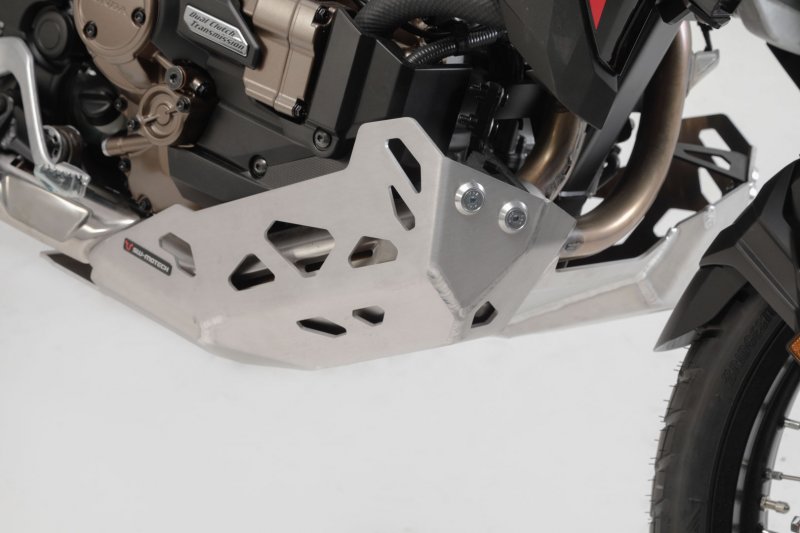 SW-MOTECH offers a durable engine guard made of 4 millimeter-thick brushed aluminium sheet suitable for the Honda Africa Twin CRF1100L and the CRF1100L Adventure Sports: it can protect the beams of the newly constructed frame and the manifolds from damage caused by stone chips and bumps when off-roading.