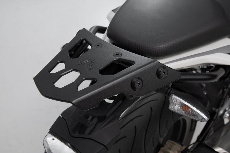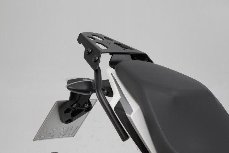 The compact STREET-RACK was developed specially for sporty motorcycles, naked bikes and smaller street bikes. The URBAN ABS top case or an adapter plate can be fixed to the rack in one step without any tools. The adapter plate provides a sturdy base for top cases from SW-MOTECH, Givi, Krauser and Shad or a Sysbag 15/30 with adapter plate. Together with the extension (sold separately) with extra large contact surface, the STREET-RACK is also suitable for strapped-on luggage. With our STREET-RACK, your bike is ready for the next long tour in a few simple steps.